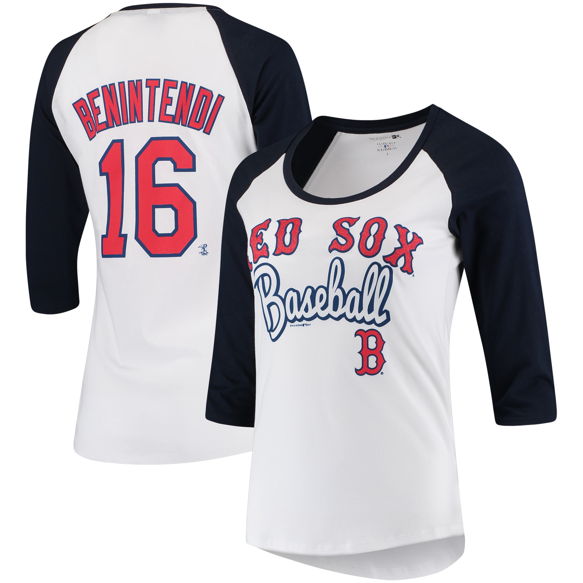 Women S 5th Ocean By New Era Andrew Benintendi White Navy Boston Red Sox Glitter 3 4 Sleeve Raglan T Shirt Walmart Com